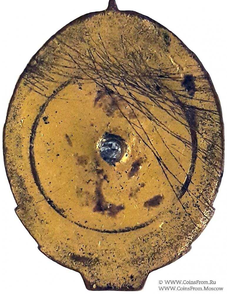 Материал: латунь, эмаль, винт. Плоский реверс. Порядковый номер отсутствует. Размер 28Х37 мм.