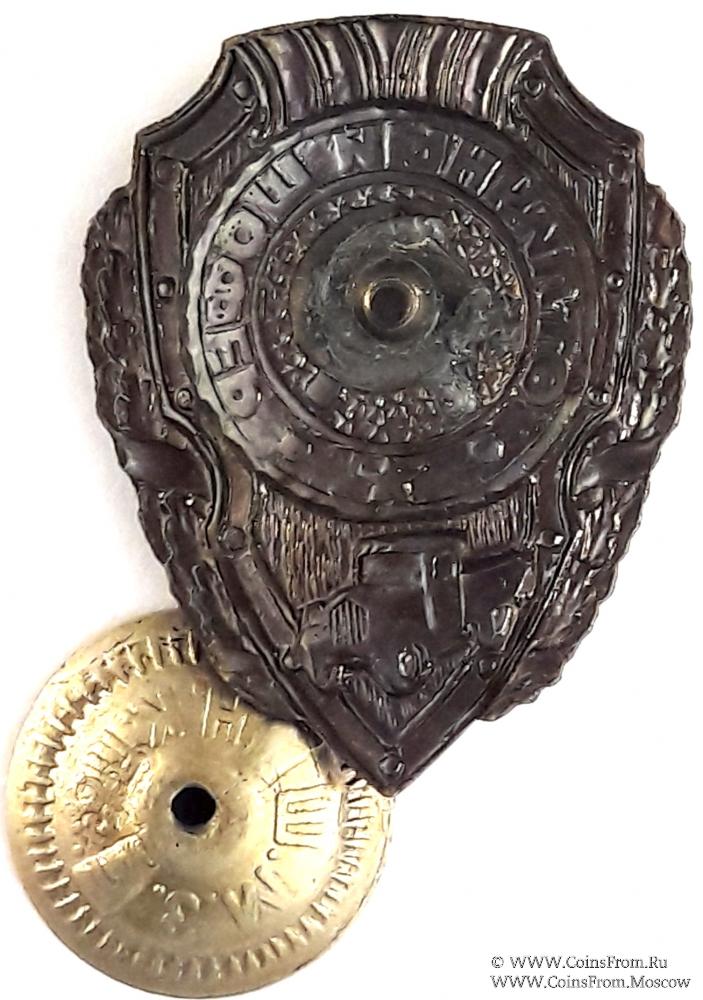 Материал: томпак, эмаль, винт. Клеймо на закрутке ШМЗ НКПС. Размер 46Х36 мм.