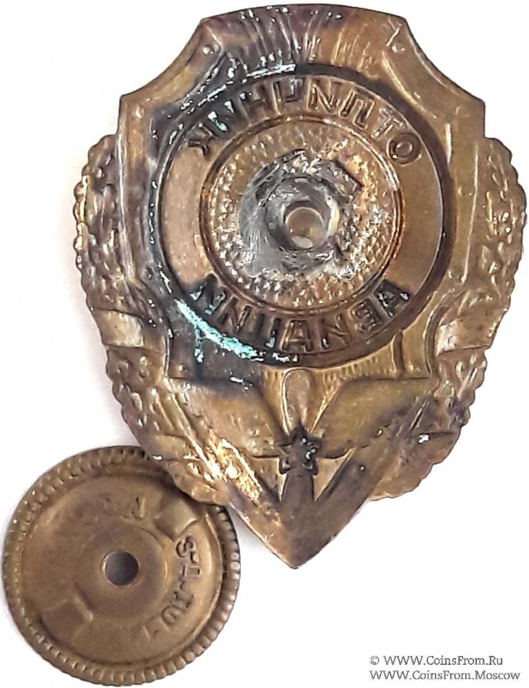 Материал: томпак, эмаль, винт. клеймо на закрутке Завод Победа. Размер 46Х36 мм.