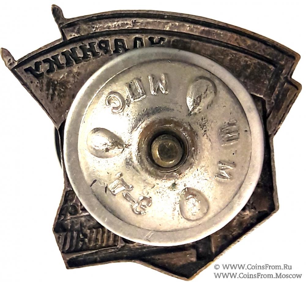 Материал: латунь, серебрение, эмаль, контр рельеф, винт. ШМ З-Д МПС. Знак с удостоверением и положением о знаке.