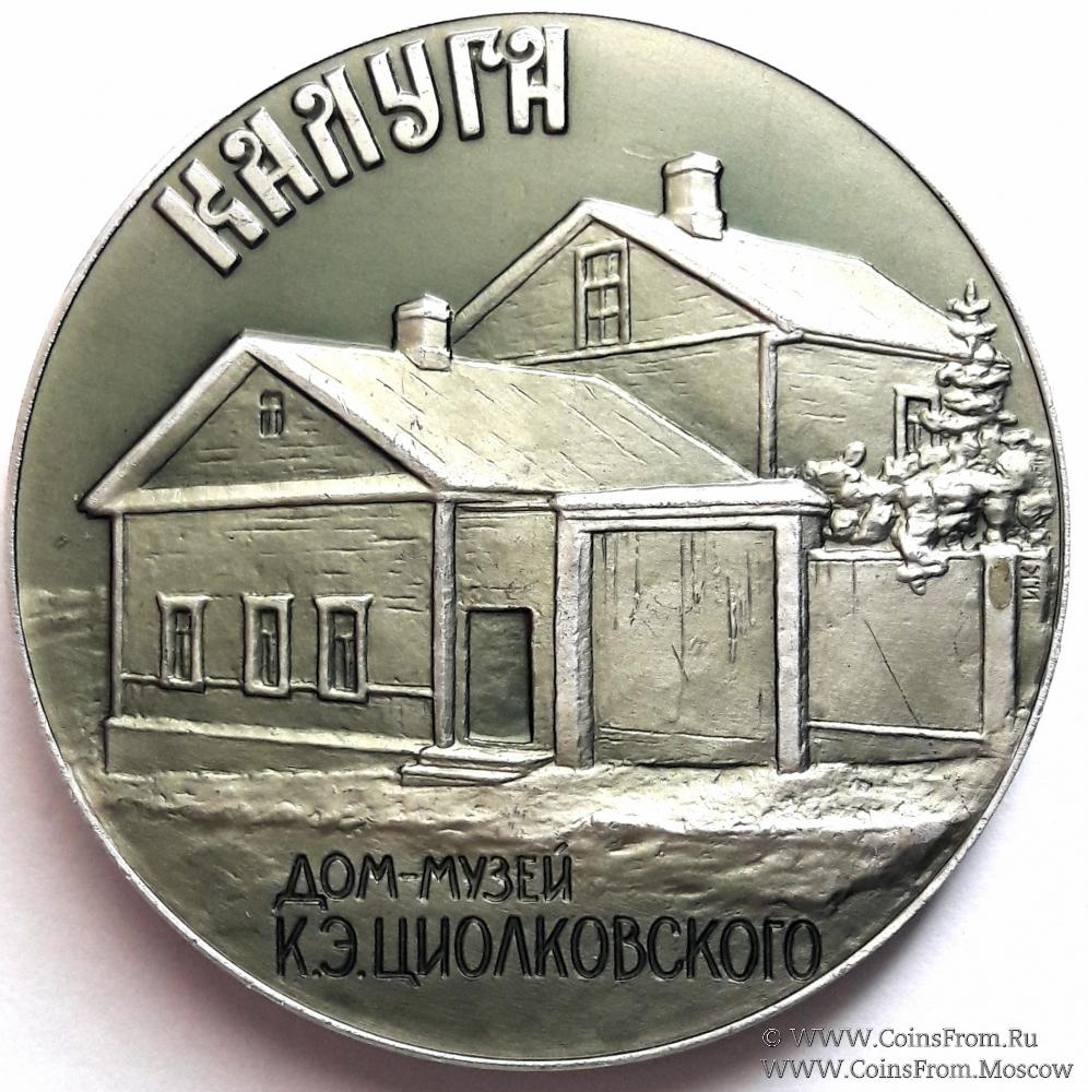 Памятная настольная медаль "Дом-музей К.Э.Циолковского. 1857-1935". Калуга. Алюминий, лак. ЛМД. Диаметр 53 мм. Тираж 4200. 1966 г.