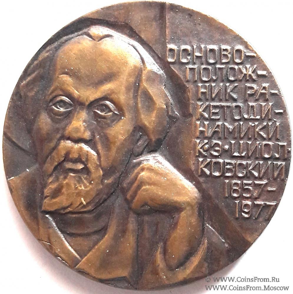 Памятная настольная медаль "Основоположник ракетодинамики Циолковский". 1857 - 1977 Калуга. Томпак. Диаметр 45,5 мм. Толщина 5 мм. Вес 59,24 г.