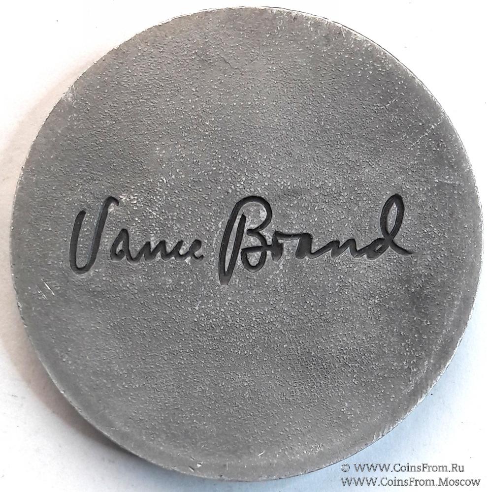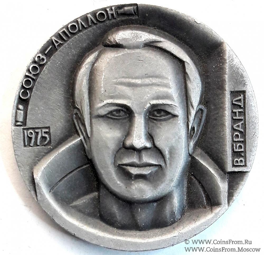 Памятная настольная медаль "Союз-Апполон В. Бранд" Алюминий. Диаметр 39 мм. Толщина 4 мм Вес 12,3 г. 1975 г.