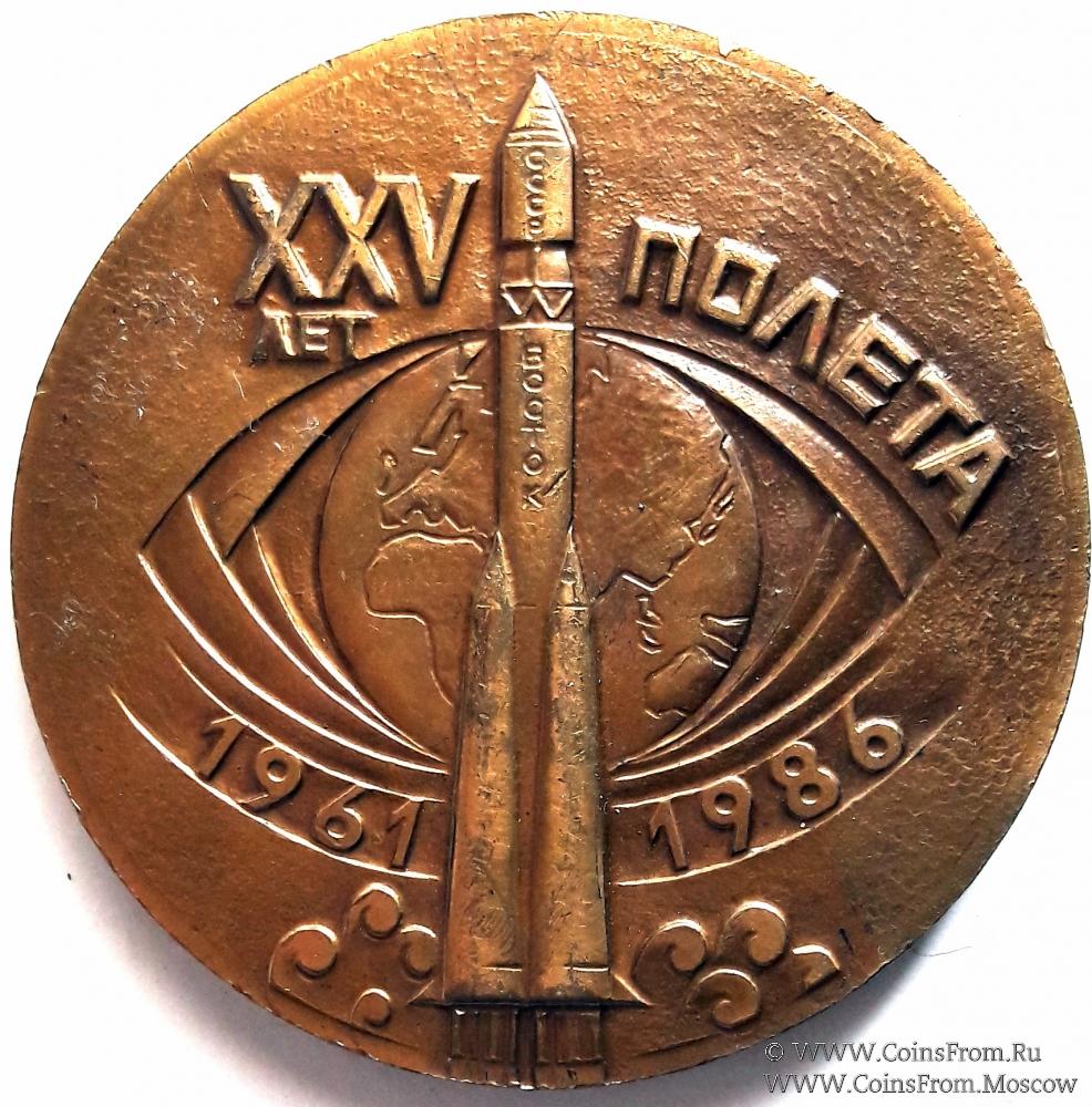 Памятная настольная медаль "ХХV лет первого полета человека в космос. Гагарин Ю.А." (1986). Томпак. Диаметр 51 мм. Толщина 5,5 мм. Вес 73,95 г.