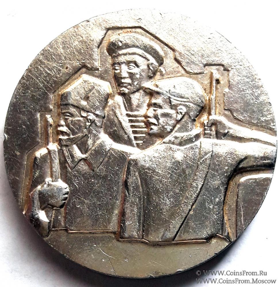 Памятная настольная медаль В ознаменовании 60 летия Великого Октября1917- 1977. Алюминий, Диаметр 45 мм. Толщина 5 мм. Вес 23,76 г.