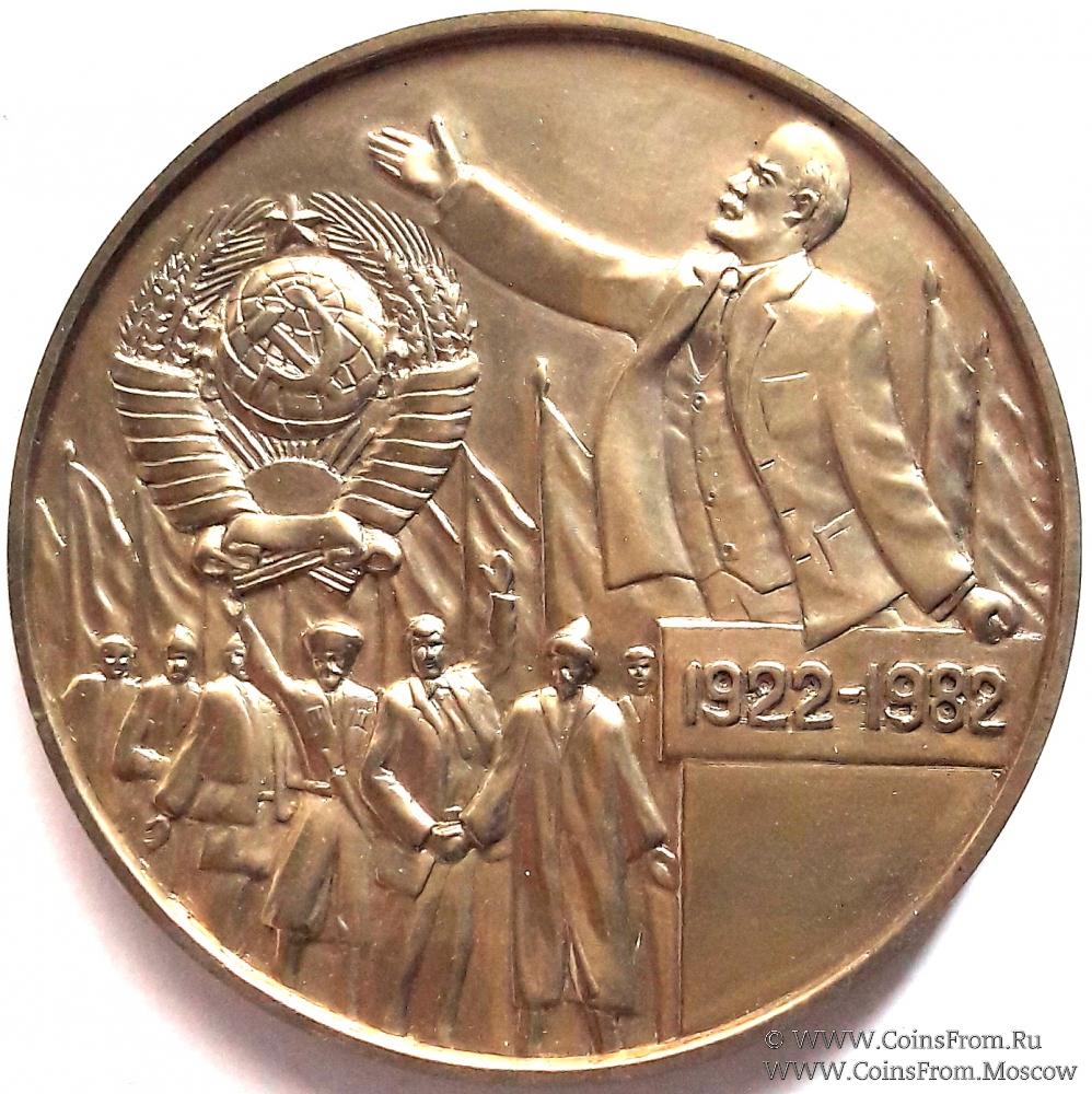 Памятная настольная медаль "В.И. Ленин". 60 лет образования СССР. 1922-1982. Диаметр 62 мм. Толщина 4 мм. Вес 79.67 г.