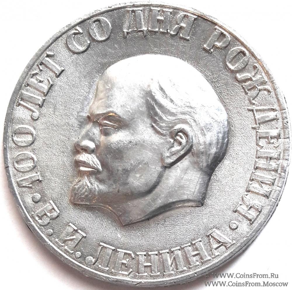 Памятная настольная медаль "В.И. Ленин". Пробный односторонний оттиск. 100 ЛЕТ СО ДНЯ РОЖДЕНИЯ В.И. ЛЕНИНА 1870-1970. Алюминий, Диаметр 52,5мм. Толщина 2 мм. Вес 8,28 г.