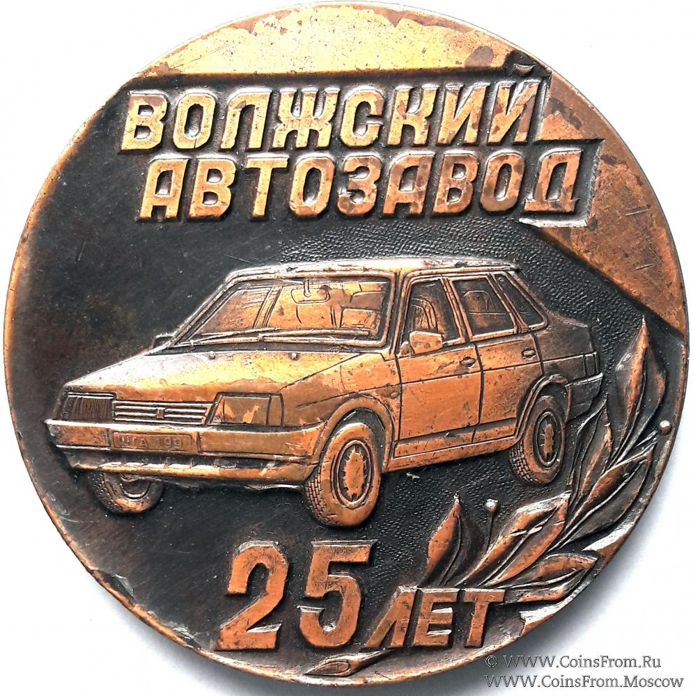Памятная настольная медаль 25 лет Волжскому автозаводу. Томпак. Лак. Диаметр 50 мм.