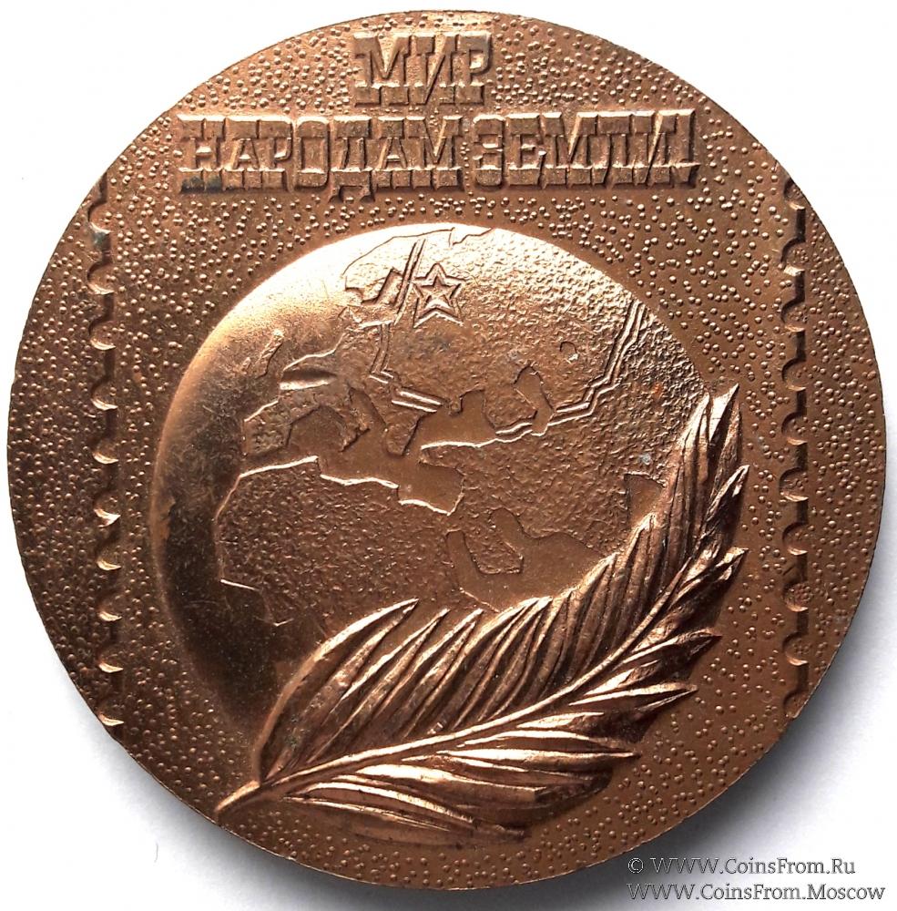 Памятная настольная медаль Филателистическая выставка "Мир народам земли". 1988 г. Томпак. Диаметр 60 мм. Толщина 5 мм.
