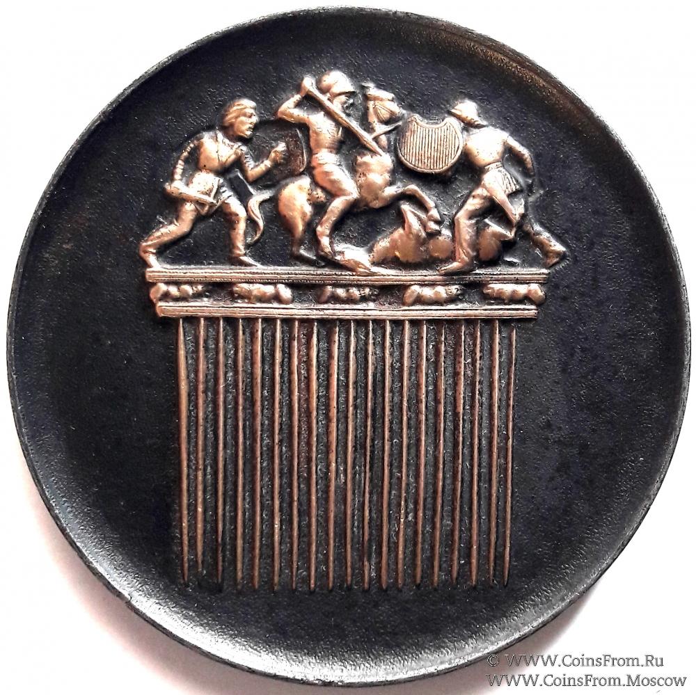 Памятная настольная медаль "Эрмитаж. Золотой гребень.". Ленинград. ЛМД Томпак, чернение. Диаметр 70 мм. Толщина 5 мм. Вес 100,07 г.