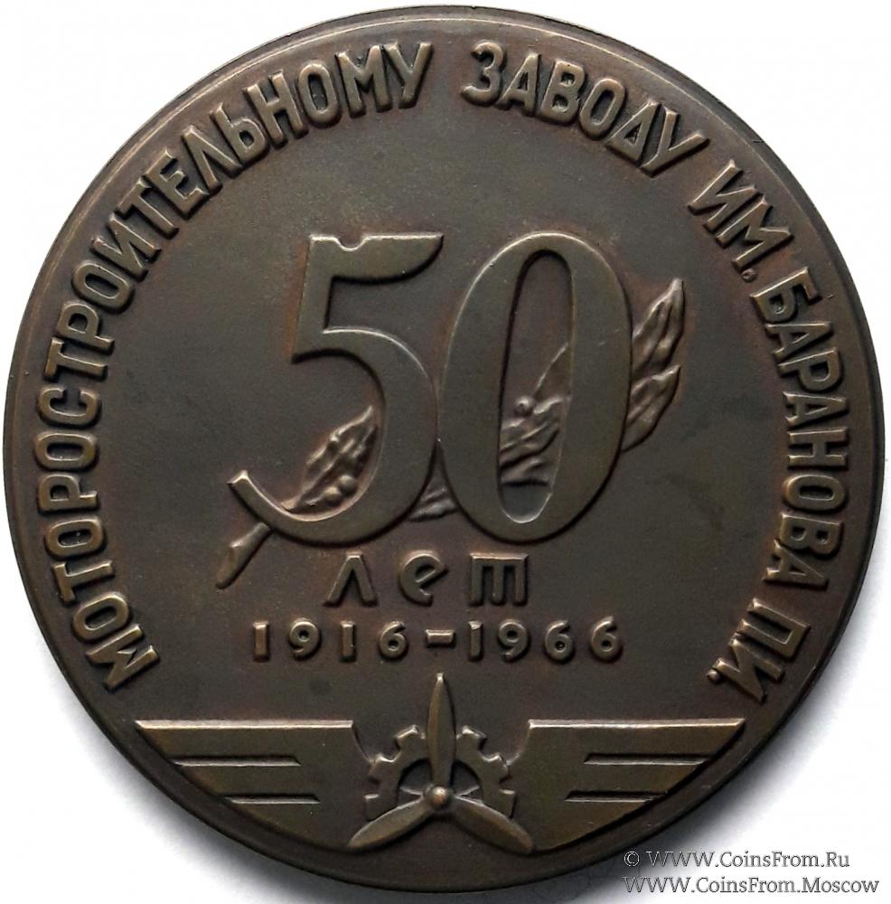Памятная настольная медаль "50 лет Моторостроительному заводу им. П.И.Баранова". 1966 г. ЛМД
