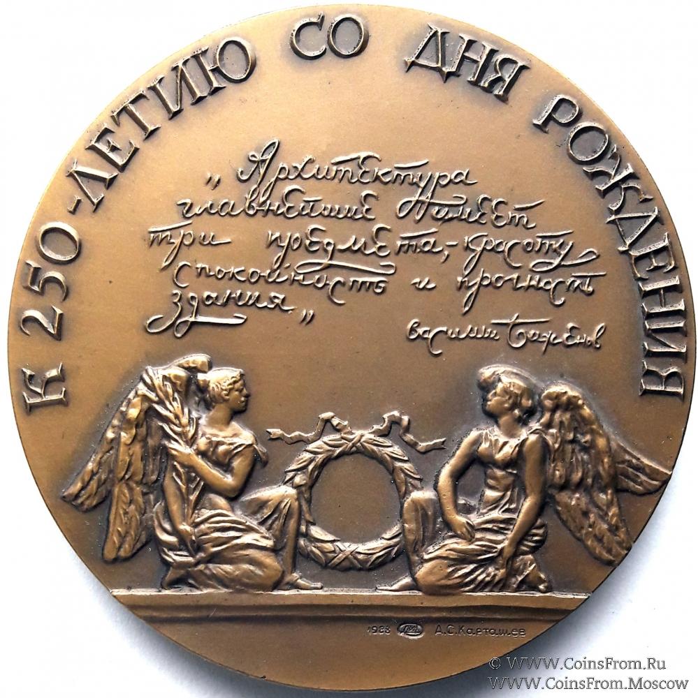 Памятная настольная медаль "250 лет со дня рождения В.И.Баженова". 1988 г. ЛМД