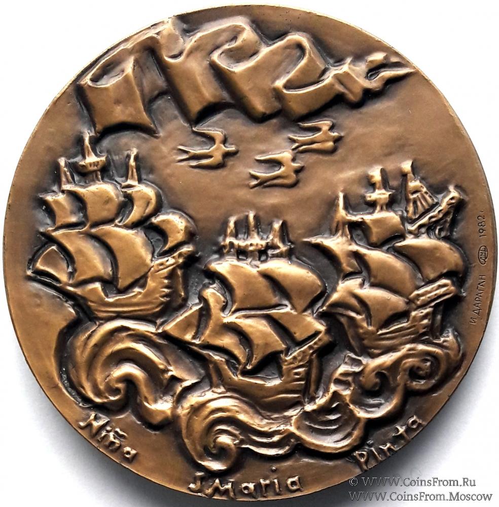 Памятная настольная медаль "475 лет со дня смерти Христофора Колумба". 1982 г. ЛМД