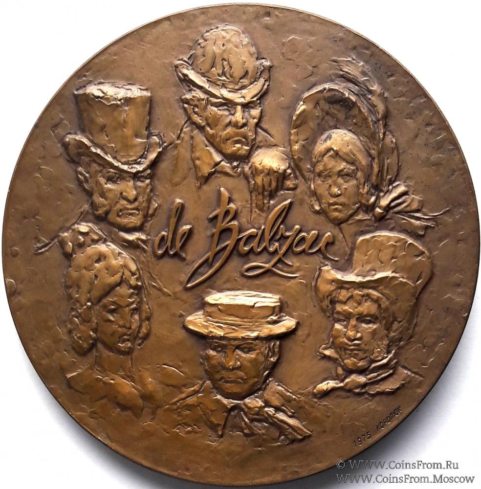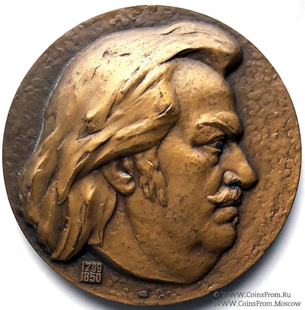 Памятная настольная медаль "175 лет со дня рождения Оноре де Бальзака". 1975 г. ЛМД