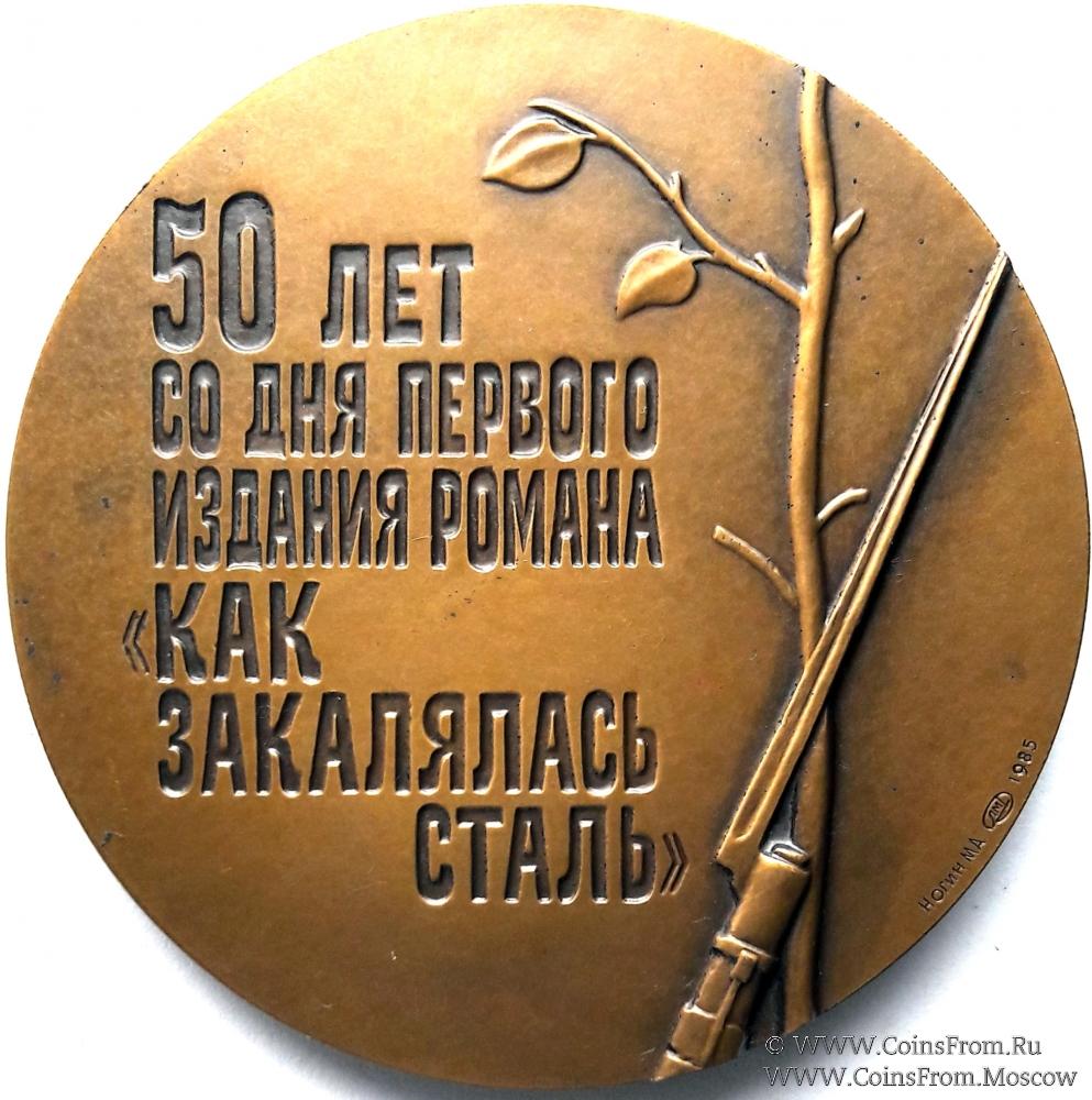 Памятная настольная медаль "В память 50-летия первого издания романа Н.А. Островского "Как закалялась сталь". 1985 г. ЛМД
