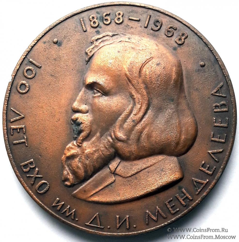 Памятная настольная медаль "100 лет ВХО им. Д.И. Менделеева". 1968 г.