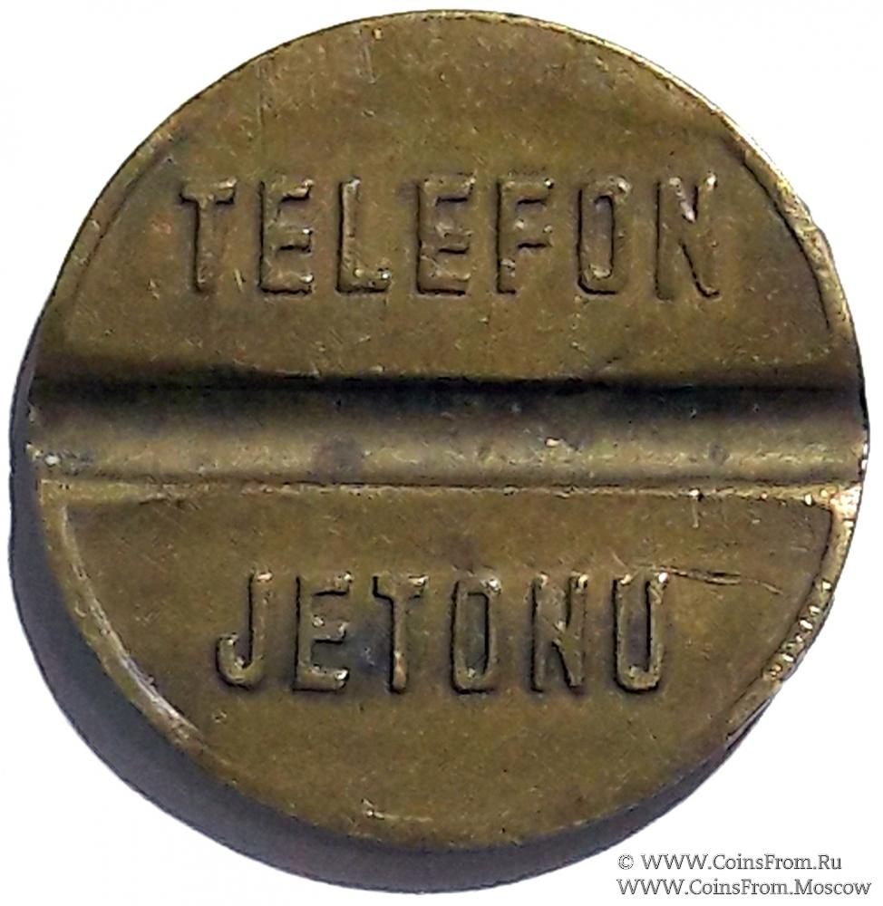 Телефонный жетон большой, Турция. Металл жёлтого цвета. Диаметр 26 мм.