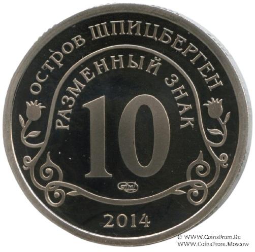 Шпицберген - Арктикуголь. 2013 г. Тираж экз. С надписью "Разменный знак". "Памяти Нельсона Манделы. 5 декабря 2013".