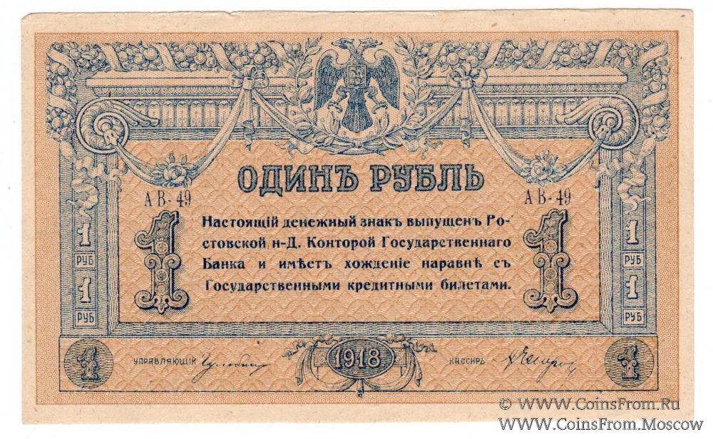 Денежный знак 1918 г. Выпуск 1919 г. (Серия А). На коричневатой бумаге. Печать ЭИДЗ, Ростов на Дону.