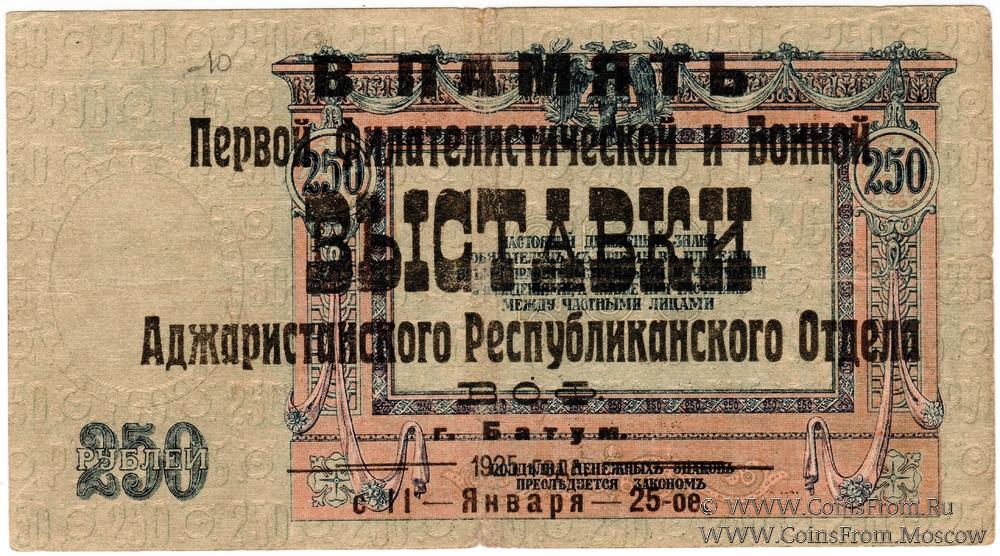 НАДПЕЧАТКА на реверсе: "В ПАМЯТЬ Первой Филателистической и Бонной ВЫСТАВКИ Аджаристанского Республиканского Отдела В.О.Ф. г. Батум. 1925 года. С 11 — января — 25-ое.".
