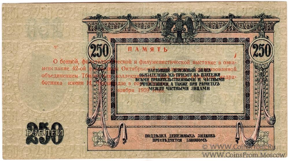 НАДПЕЧАТКА: "ПАМЯТЬ / О бонной, филателистической и филуминистической выставке… / 7 ноября 1959 года".