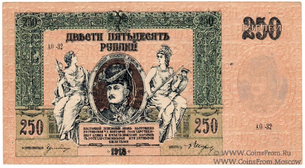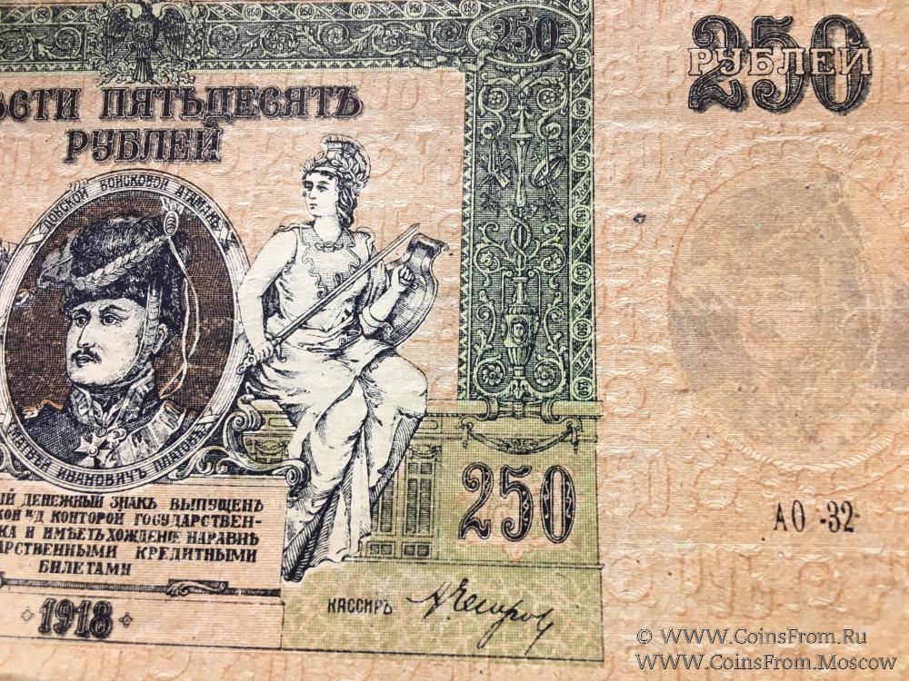 Денежные знаки образца 1918 г. (1, 3, 5, 10, 25, 100, 250 и 500 рублей)