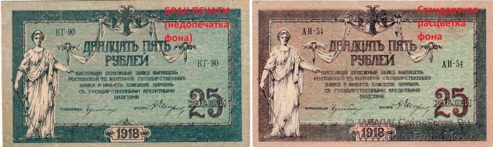 Денежный знак 1918 г. БРАК печати: непропечатка фона (только зеленый фон аверса). Сине-зеленый оттенок. Новочеркасская печать ЭЗЦБ (серия К...). Водяной знак - "ГБ".