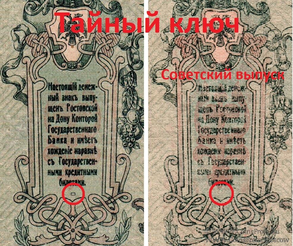 Денежный знак 1918 г. Выпуск 1919 г. (с серии АМ и далее). Водяной знак: "ГБ". Номер 5-значный, текущий (без тире). Печать ЭИДЗ, Ростов на Дону.