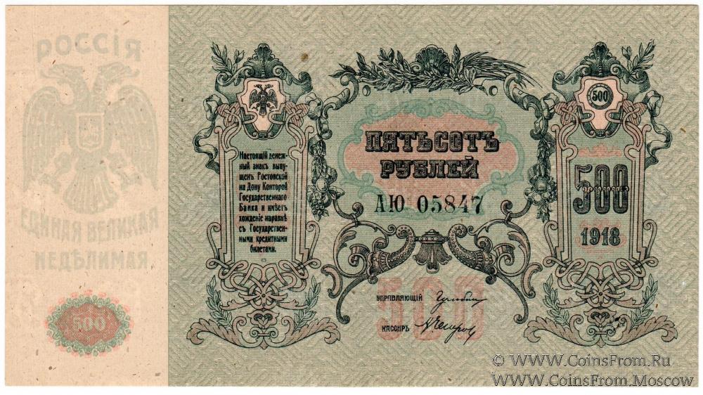 Денежные знаки образца 1918 г. (1, 3, 5, 10, 25, 100, 250 и 500 рублей)