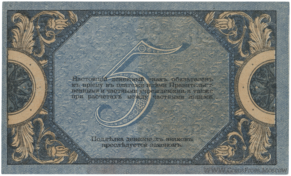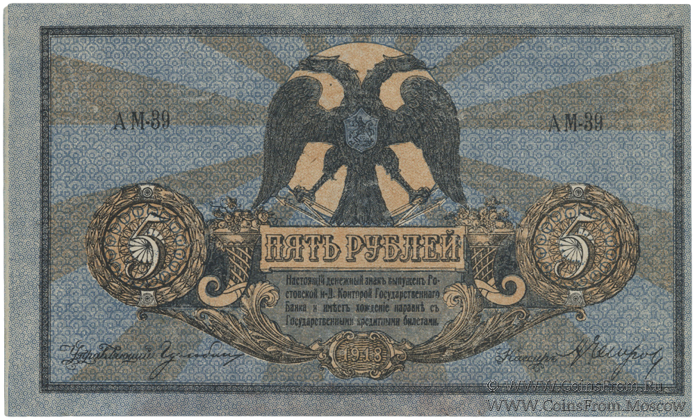 Денежный знак 1918 г. Выпуск 1919 г. (с серии АЖ и далее). Водяной знак: "ГБ". Печать ЭЗЦБ, Новочеркасск.