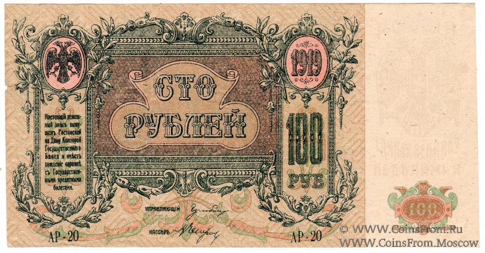 Денежный знак 1919 г. Выпуск 1919 г. (Серии А). Водяной знак: "ГБ". Печать ЭИДЗ, Ростов на Дону.
