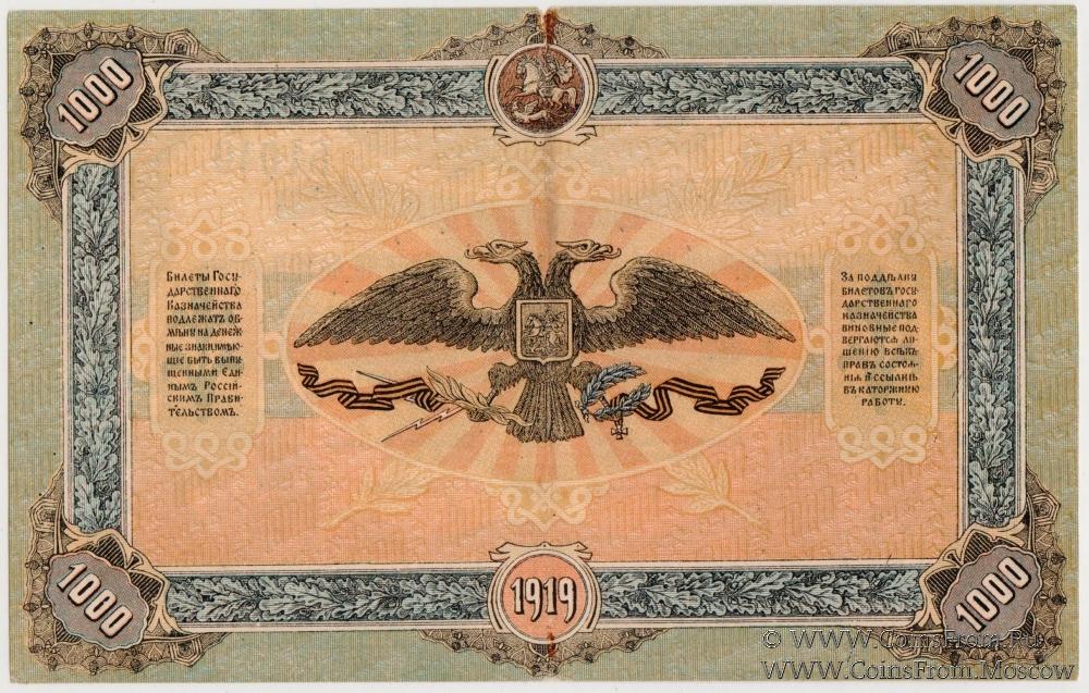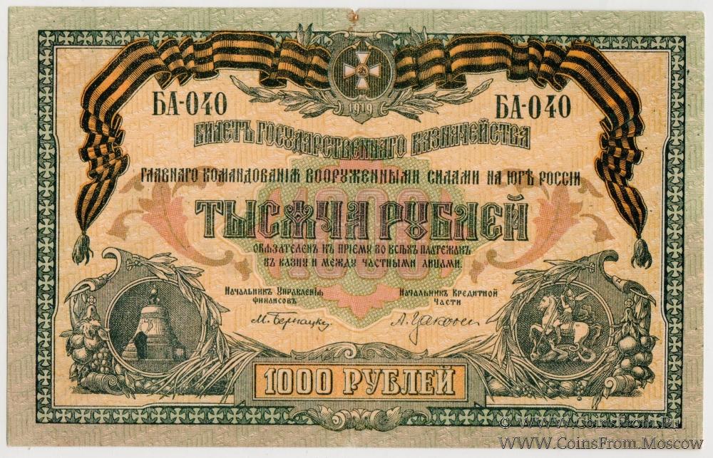 Билет Государственного Казначейства ГК ВСЮР 1919 г.