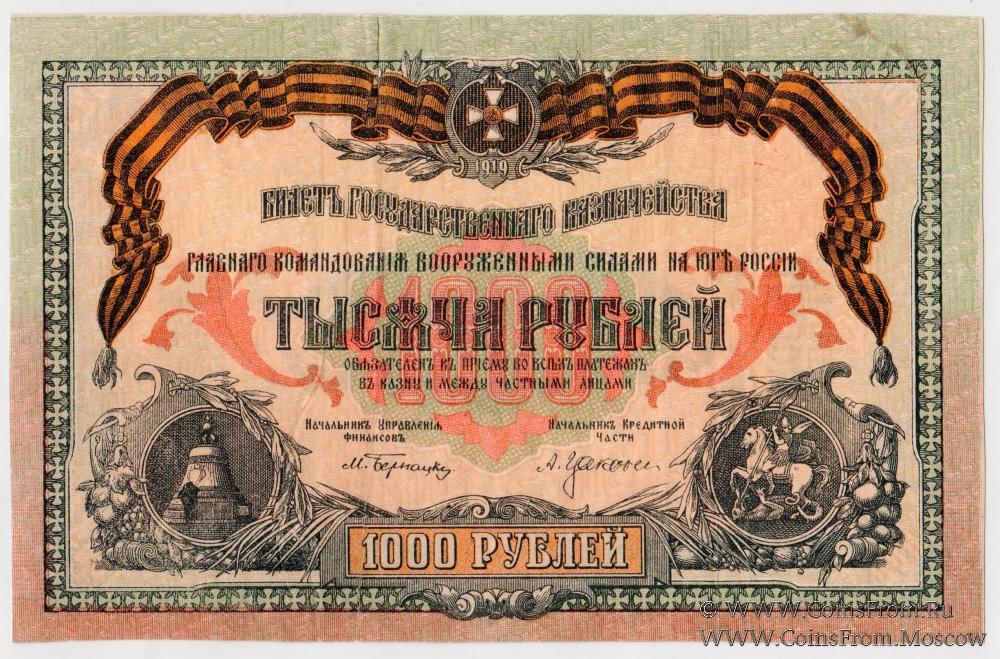 Билет Государственного Казначейства ГК ВСЮР 1919 г.