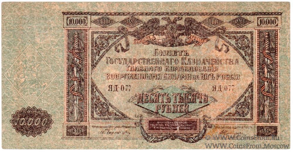 Билет Государственного Казначейства ГК ВСЮР 1919 г.