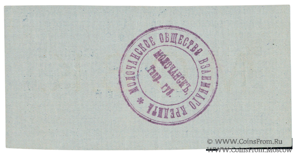 Бон без даты (1918 г.). Серия В. Бумага голубая. Молочанское Общество Взаимного Кредита (М.О.В.К.).