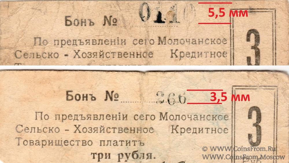 Бон 1918 г. Номер 3-значный 3,5 мм. Молочанское Сельско-Хозяйственное Кредитное Товарищество.