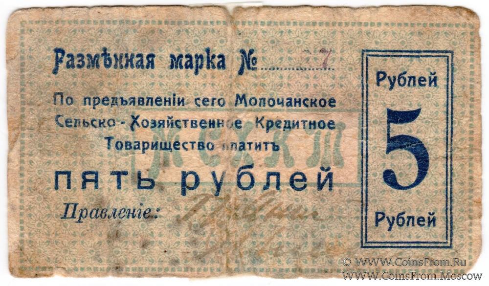 Разменная марка без даты (1918 г.). Номер 2-значный, черный. Молочанское Сельско-Хозяйственное Кредитное Товарищество (МСХКТ).