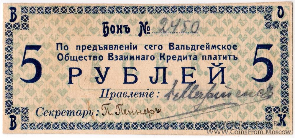 Бон без даты (1918 г.). Выпуск 2. С черной подписью. Вальдгеймское Общество Взаимного Кредита (В.О.В.К.).