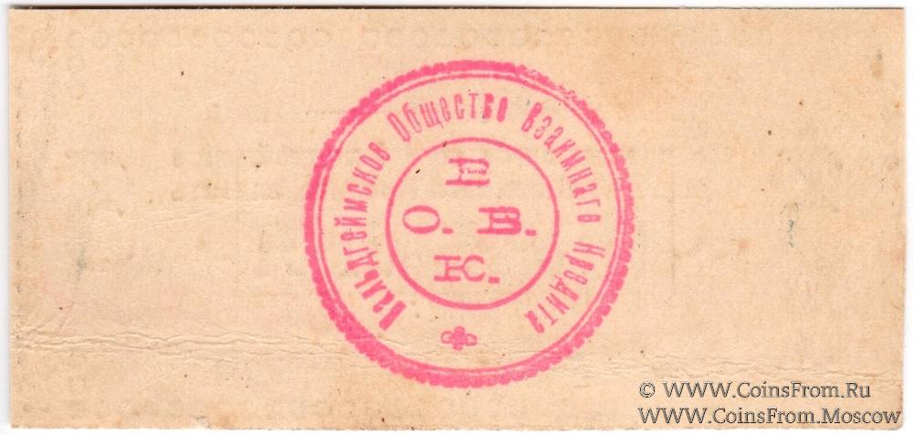Бон без даты (1918 г.). Выпуск 1. С красной подписью. Цифры номинала узкие. Вальдгеймское Общество Взаимного Кредита (В.О.В.К.).