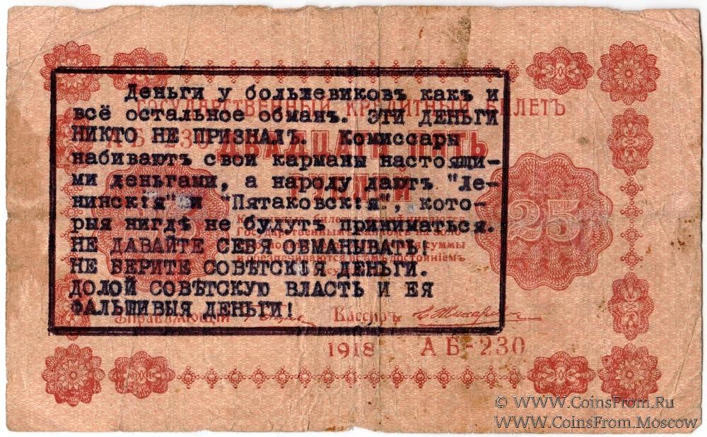 НЕ БЕРИТЕ СОВЪТСКIЯ ДЕНЬГИ.