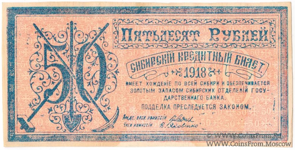 Сибирский кредитный билет 1918 г. БРАК: не допечатан; реверс только фон; без номера.