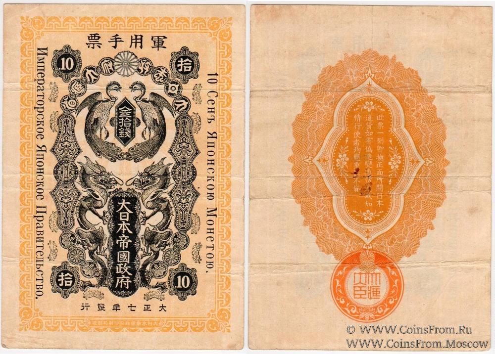 Выпуск Японией военных иен в Сибири и Дальнем Востоке для нужд японской армии. 1918 г. Императорское Японское Правительство.