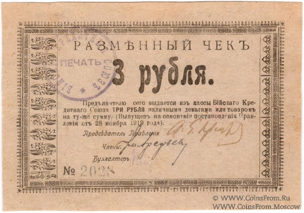 3 рубля 1919 г (Бийск)