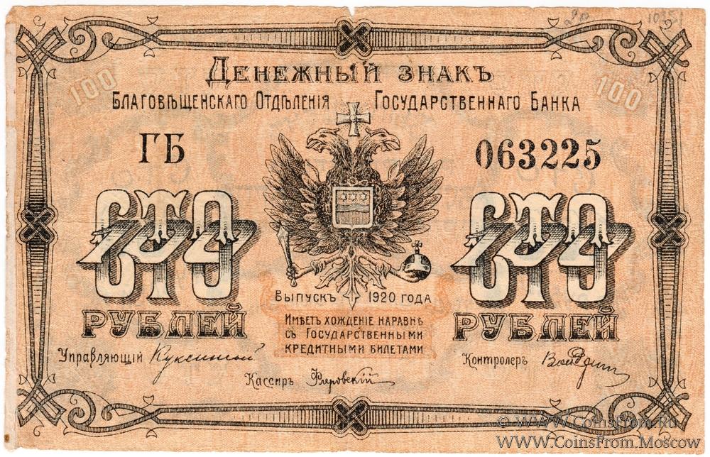 Денежный знак 1920 г. Серия ГБ. Благовещенское Отделение Государственного Банка.