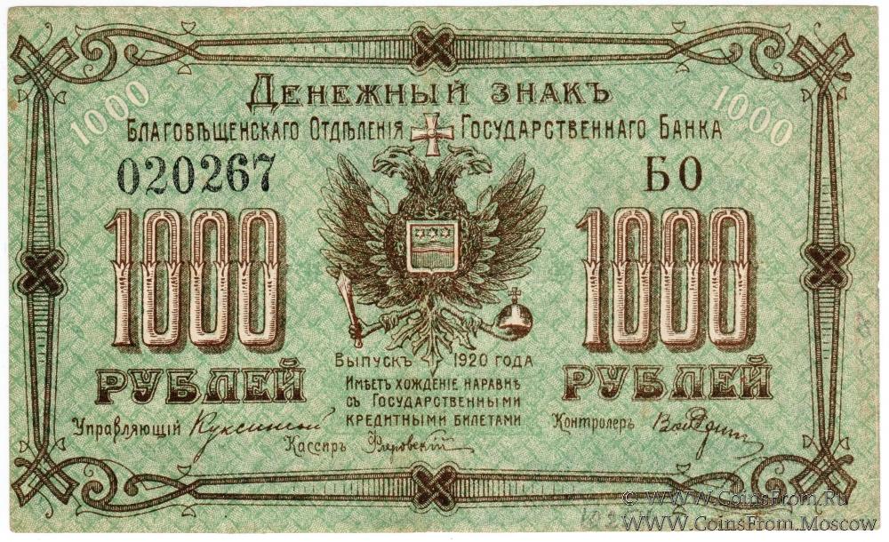 1.000 рублей 1920 г. (Благовещенск)
