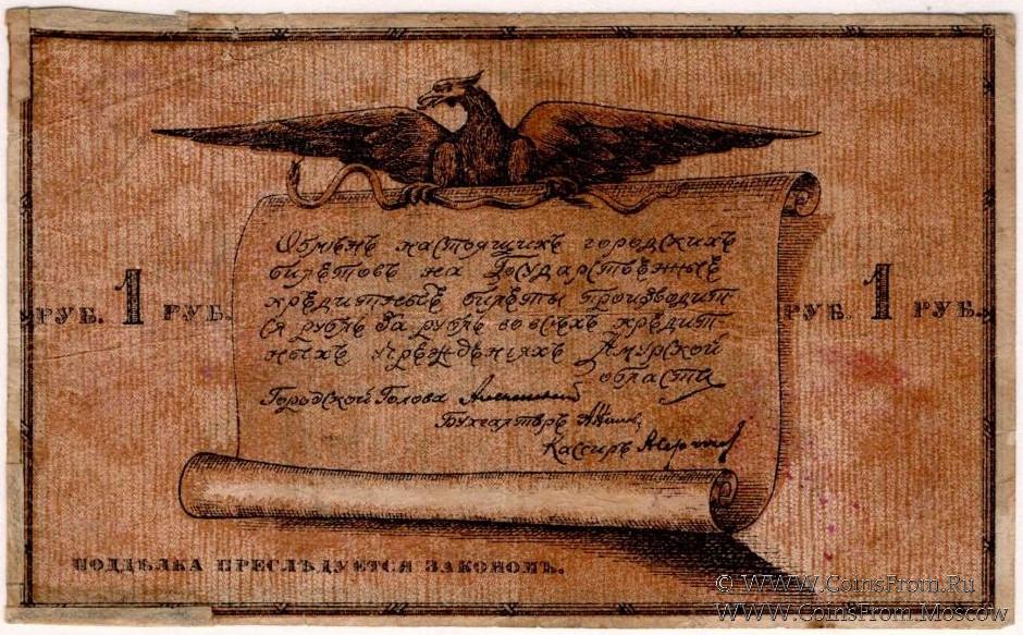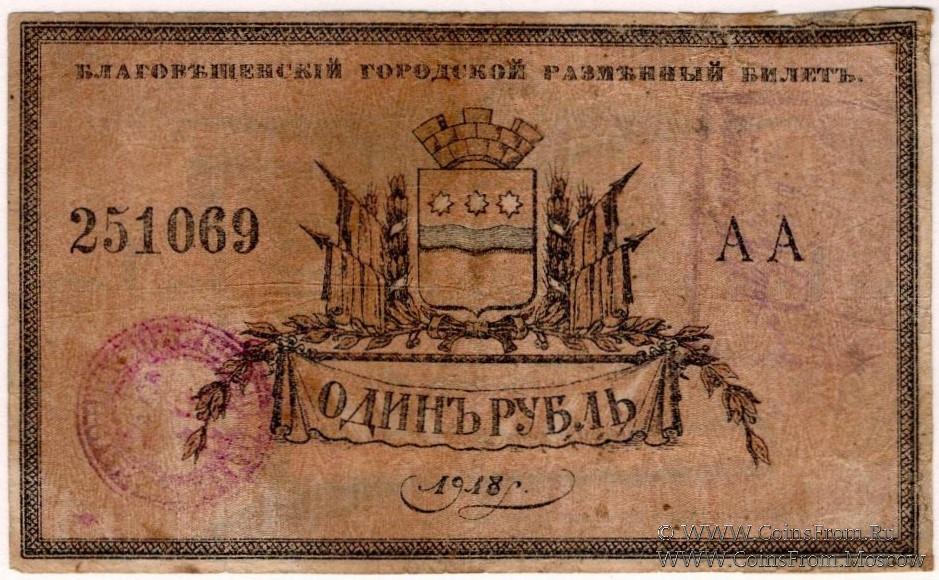 Благовещенский городской разменный билет 1918 г. С регистрацией при Колчаке: красная негативная печать и штамп на аверсе. Кассир А.Сергеев. Городское Самоуправление.