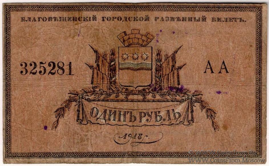 Благовещенский городской разменный билет 1918 г. без регистрации. Городское Самоуправление.