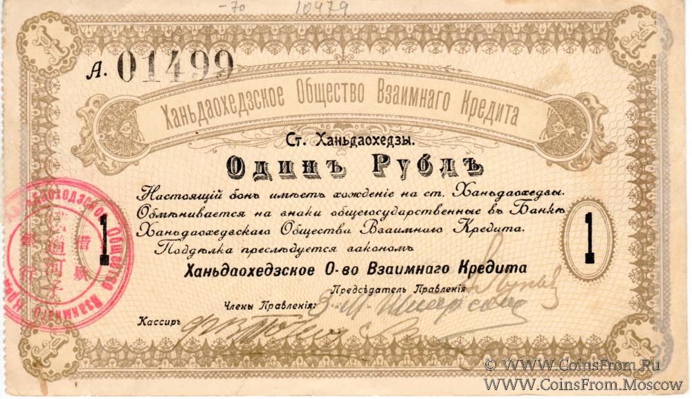 Бон. 2-й выпуск 1919 г. Без акцепта на реверсе. Ханьдаохедзкое Общество Взаимного Кредита.