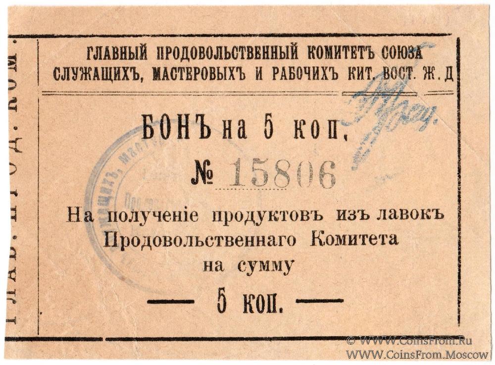 Бона без даты (1919 г.). Главный Продовольственный Комитет Союза Служащих, Мастеровых и Рабочих Китайской Восточной Железной Дороги.