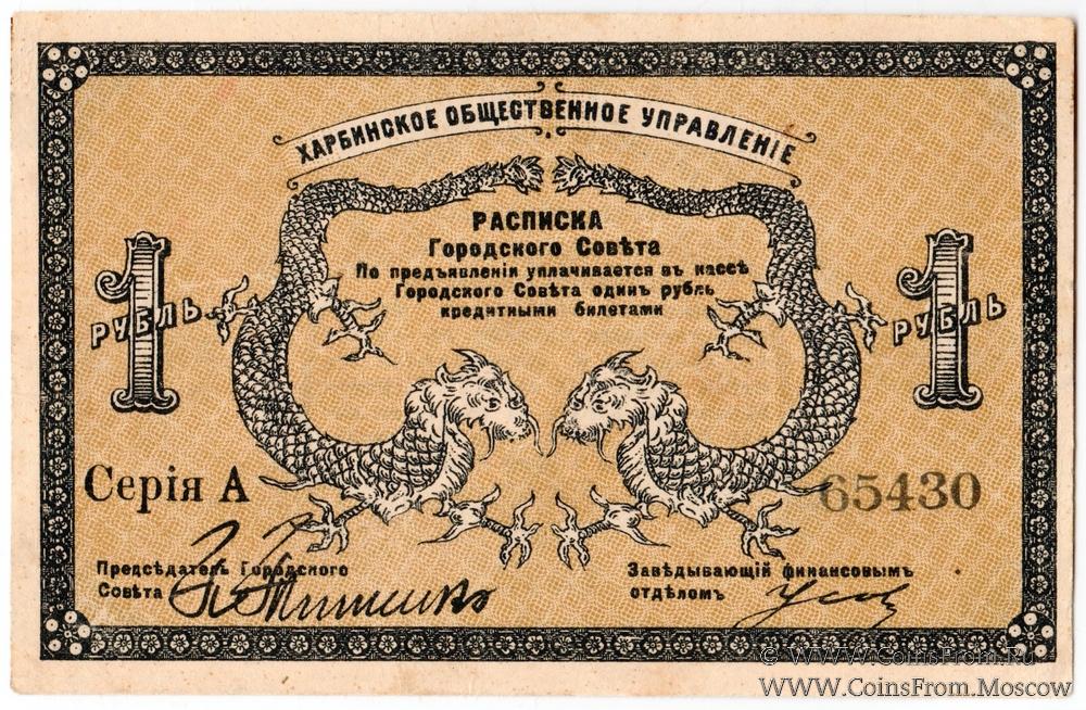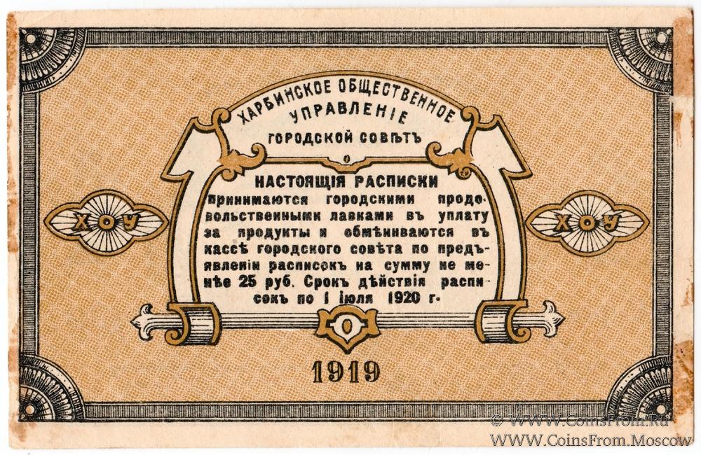 Расписка городского совета 1919 г. Харбинское Общественное Управление.